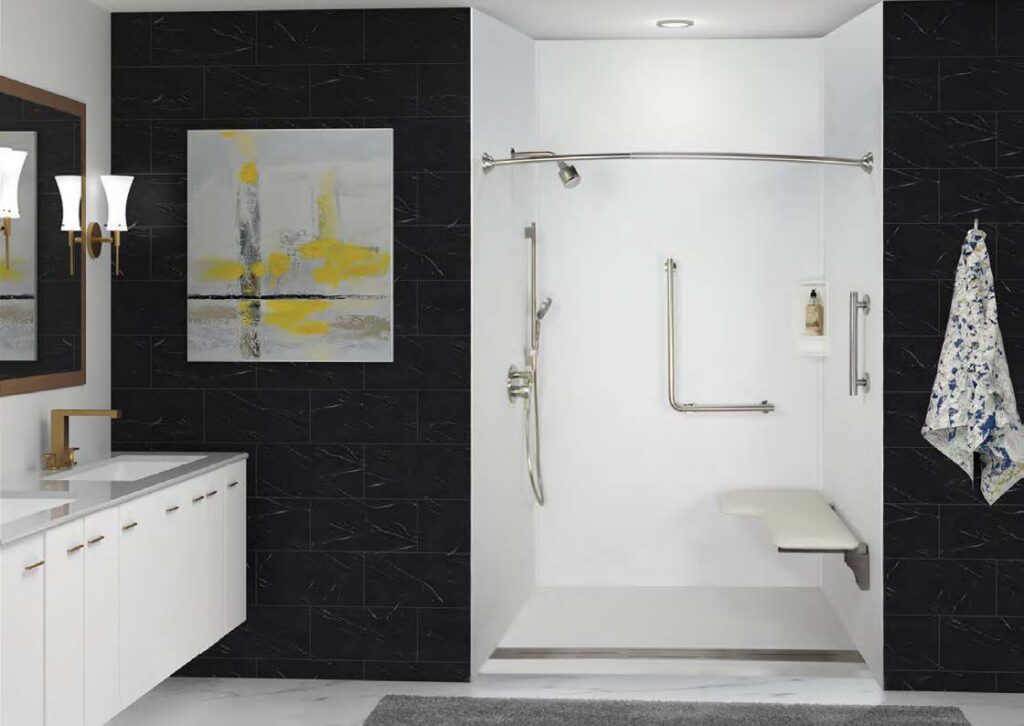 Customizable options, including seats, grab bars, and adjustable shower valves and heads